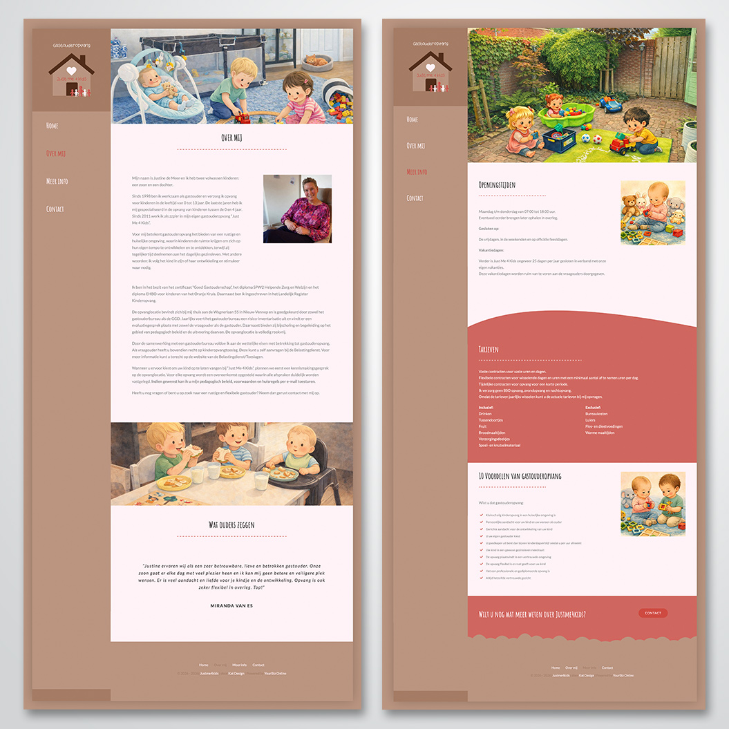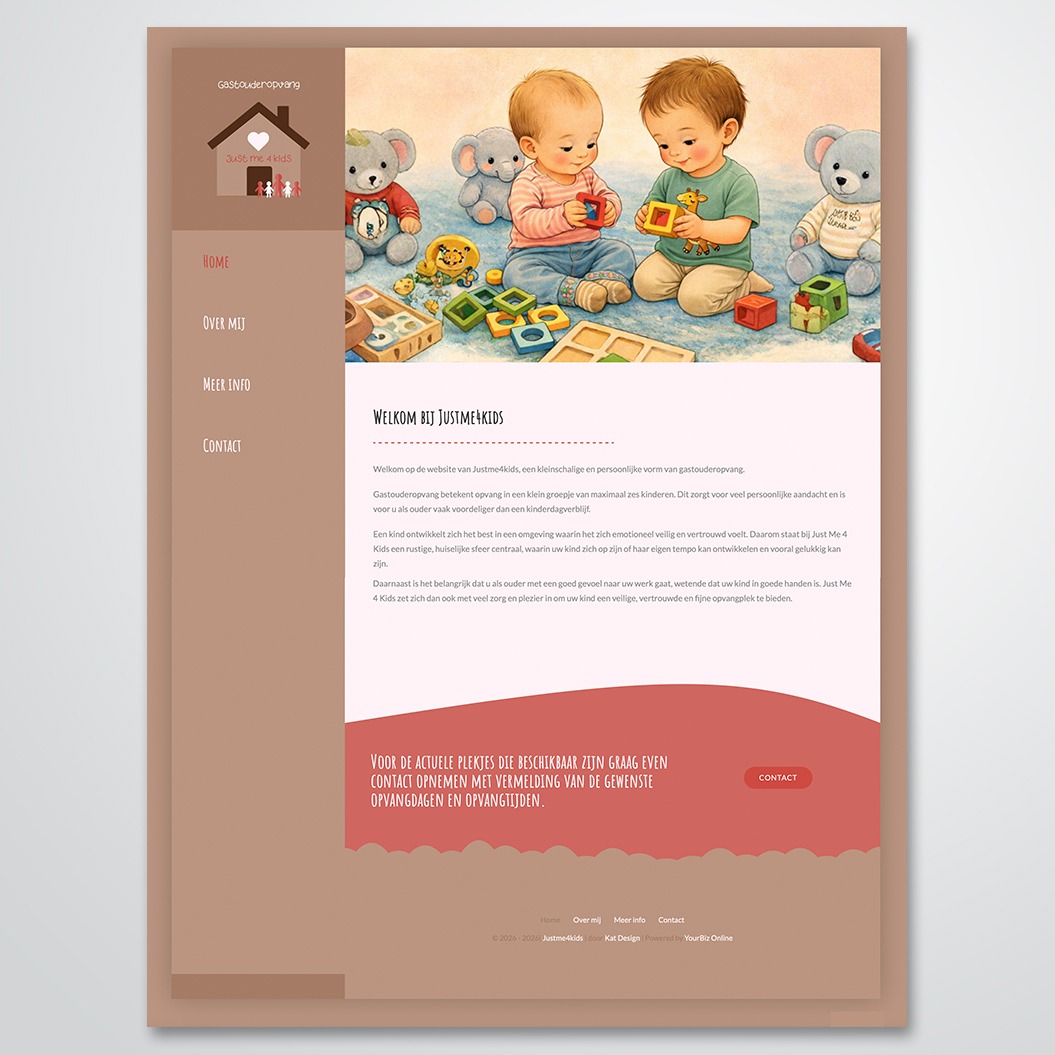 Website ontwerpen en bouwen voor Justin de Meer van Justme4kids Gastouderopvang.